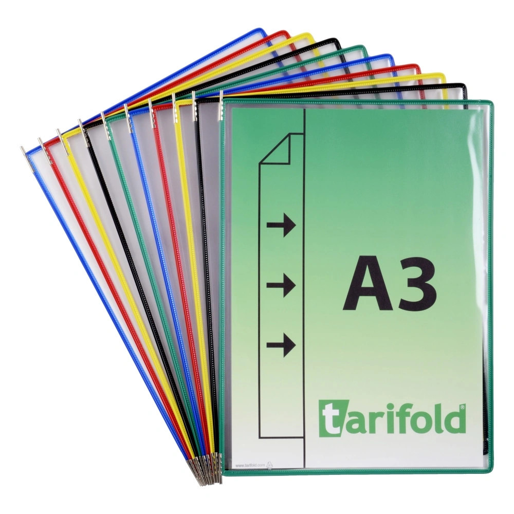 A kétoldalú bemutató tábla a Tarifold tartókba tervezett prezentációs rendszerek részét képezi. A táblák műanyaggal bevont, acélhuzal kerete erős és egyben rugalmas tartást eredményez. A tábla a fém forgócsapoknak köszönhetően a tartókba könnyen behelyezhető és eltávolítható. Alkalmas ipari üzemekben való használatra. A bemutató tábla védi a dokumentumokat a szennyeződésektől és a nedvességtől, ugyanakkor a dokumentumok könnyen cserélhetők, a dokumentumok hatékony kihelyezésére