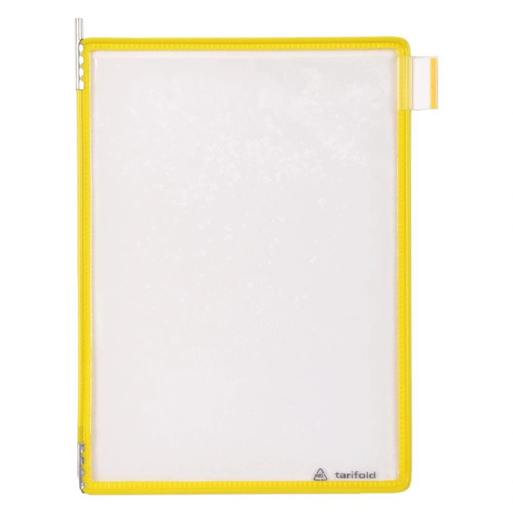 A bemutató tábla kiemelkedő minőségének köszönhetően flexibilis, strapabíró és rendkívül hatékony. A kétoldalú bemutató tábla a Tarifold tartókba tervezett prezentációs rendszerek részét képezi. A táblák műanyaggal bevont, acélhuzal kerete tartós és egyben rugalmas tartást eredményez. A tábla a fém forgócsapoknak köszönhetően a tartókba könnyen behelyezhető és eltávolítható. Alkalmas ipari üzemekben való használatra. A bemutató tábla védi a dokumentumokat a szennyeződésektől és a nedvességtől, ugyanakkor a dokumentumok könnyen cserélhetők.