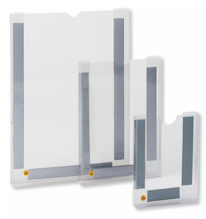 ESD védett területeken számos gyártási folyamat, különösen a félvezető- és elektronikai iparban nagyon érzékenyek az ellenőrizetlen statikus kisülésre. Ezek a területek azonban nem kell nélkülözniük a VisuModul információs tábla. A ESD tábla típusának porszórásos bevonatát, finom koromrészecskék vannak beépítve, növelve a felület vezetőképességét. A statikus töltés ezért kizárt. A fehérfelület „só-bors-effektust” mutat.Antisztatikus kijelzőzseb és dokumentum tartók természetesen szintén kaphatók.