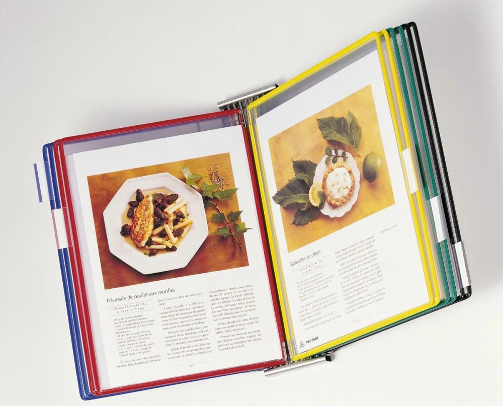 Fali tartó szett, A4, fém, rozsdamentes, 10 db bemutatótáblával, vegyes Elsősorban élelmiszeriparban, konyhákban és más nedves helyiségekben történő használatra alkalmas. E stabil, rozsdamentes, fém tároló rendszer lehetővé teszi, hogy a kihelyezett információ szinte mindenütt látható legyen. A fali tartó alap kapacitása 10 db tábla (20 oldal), mely végtelenül bővíthető a tartók egymás mellé szerelésével. A szett 10 db vegyes táblát tartalmaz. Klasszikus megjelenésének és törhetetlenségének köszönhetően széles körben elismert és használt. kétoldalú, álló, felülről nyitott bemutatótáblák, 5 db index fül álló formátumú bemutatótáblák acélhuzal keret, tükröződésmentes PVC rozsdamentes, megfelel a HACCP szabványnak rögzítéshez szükséges csavarokat tartalmaz oldalsó rozsdamentes ütköző, amely megfelelő dőlésszöget biztosít és a bemutatótáblákat fellapozott állapotban tartja. kiszerelés: 1 szett/doboz