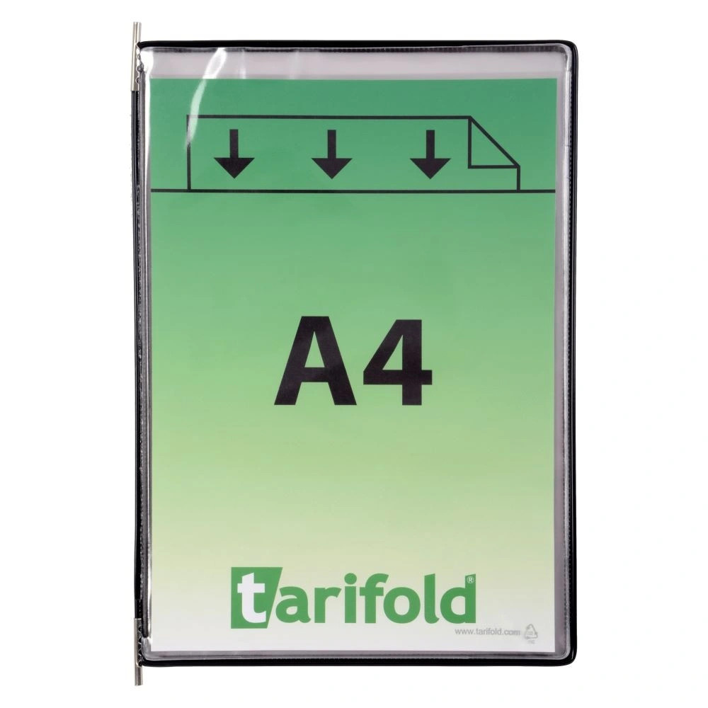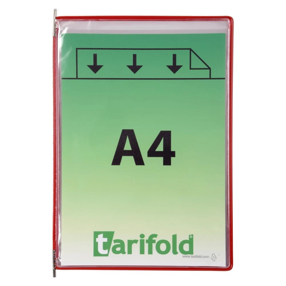 Foldfive: 5 db bemutatótábla egyben, A4, álló,, felül nyitott, vegyes - 5 db Speciális, nagykapacitású Foldfive bemutatótábla, táblánként +4 db A4 méretű tasakkal - ezáltal egy tábla kapacitása 10 lapra növekedik. A kétoldalú bemutatótábla a Tarifold tartókba tervezett prezentációs rendszerek részét képezi. A műanyaggal bevont bemutatótábla acélhuzallal van megerősítve, mely tartós és egyben rugalmas keretet eredményez. A fém forgócsapoknak köszönhetően könnyen behelyezhető és eltávolítható. Alkalmas ipari üzemekben való használatra. A bemutatótábla védi a dokumentumokat a szennyeződésektől és a nedvességtől, a dokumentumok könnyen cserélhetők.