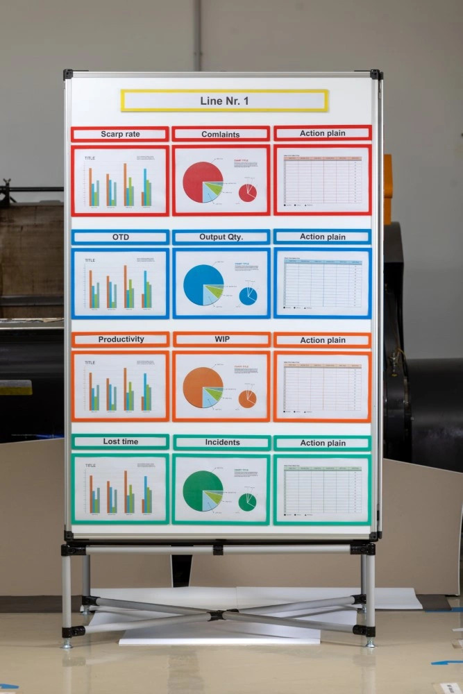 A Team Performance Pillars célja, hogy megkönnyítse a kommunikációt a GEMBA autonóm csapatoknak. Ezek az info oszlopok segítenek a csapatoknak megjeleníteni a legfontosabb KPI-ket és a területről származó információkat, amiket a műszakváltásokhoz és más csapatkommunikációs megbeszélésekhez használják őket.