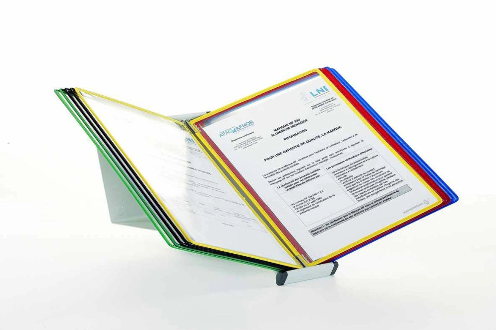 Table rack A4, metal, empty, for 10 display boards, grey Metal table racks provide instant access to information and protect the documents they hold. The table stand 224200-s can be extended to hold up to 30 display boards by fitting an additional wall holder (F214100 or F214000). Can also be wall mounted! Display boards are not included in the package. Suitable for use in industrial plants, warehouses, shops, etc. (Can be ordered with a capacity of up to 40-60 boards)