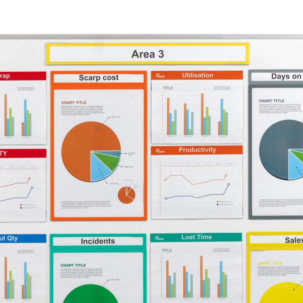 Grouping KPI’s on visual boards under the titles Safety, Quality, Delivery, and Cost is based on the traditional Toyota approach. Now you can structure your own boards in a visual and systematic