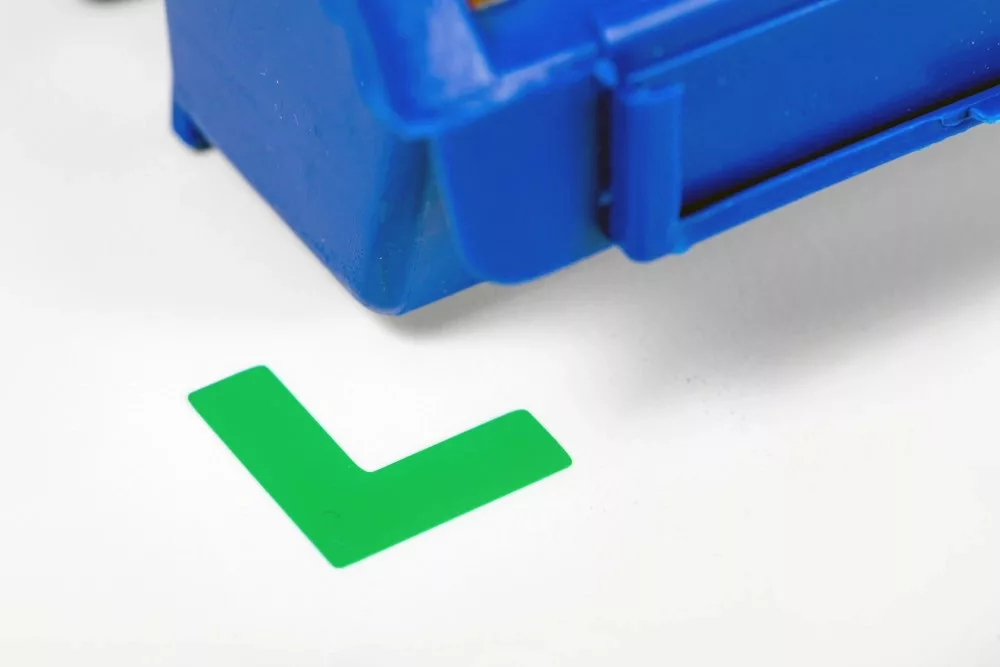 Ez a kis méretű tárhely jelölés főleg asztalokon, esetleg polcokon elhelyezett eszközök, tárgyak, vagy dokumentumok pozíciójának kijelölésére szolgál az irodákban és a termelési területeken is.